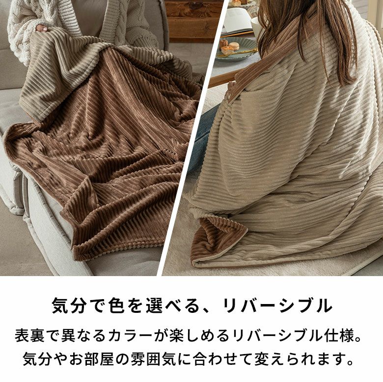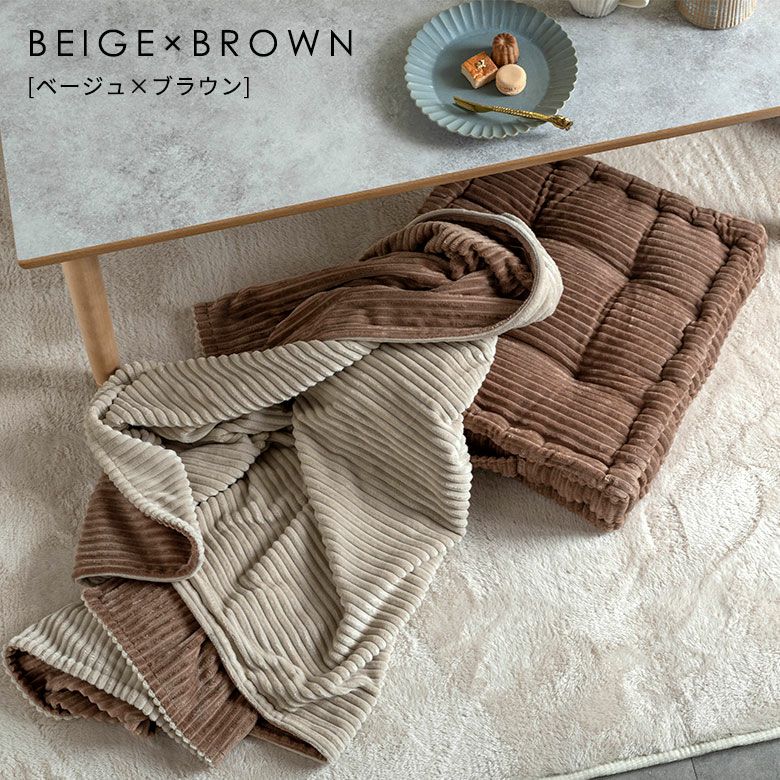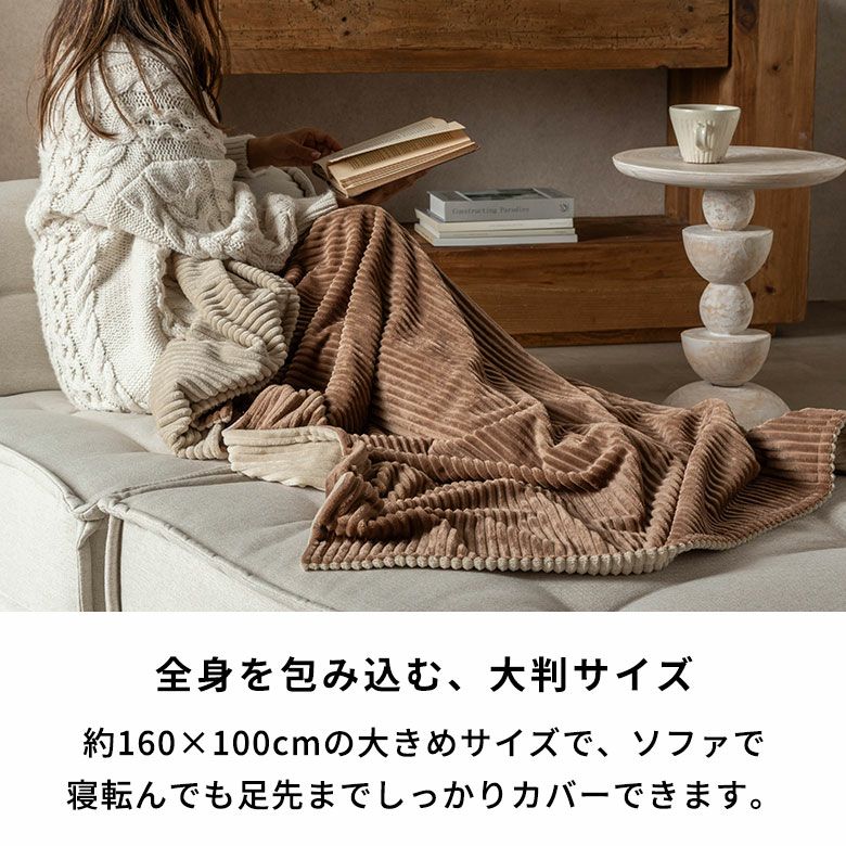 長さ160cmで全身を包み込み、まるで毛布のような温かさのひざ掛け 足先まで包み込む 2枚合わせコーデュロイのあったか大判リバーシブルブランケット 約160×100cm [70209]