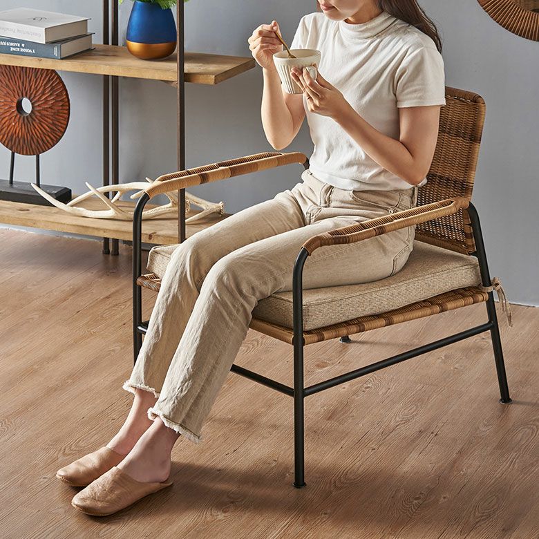 リラックス いす イス カフェチェア リラックスチェア 室外 室内 チェア パーソナルチェア リビングチェア ラタン風チェア ベージュ 座面高 30cm シンプル ナチュラル 家具 インテリア クッション付き 耐薬品性 耐候性 防水 アームチェア 1人掛け 1P 1人用 チェアー パーソナルチェアー リゾート おしゃれ 北欧 モダン アジアン [91585]
