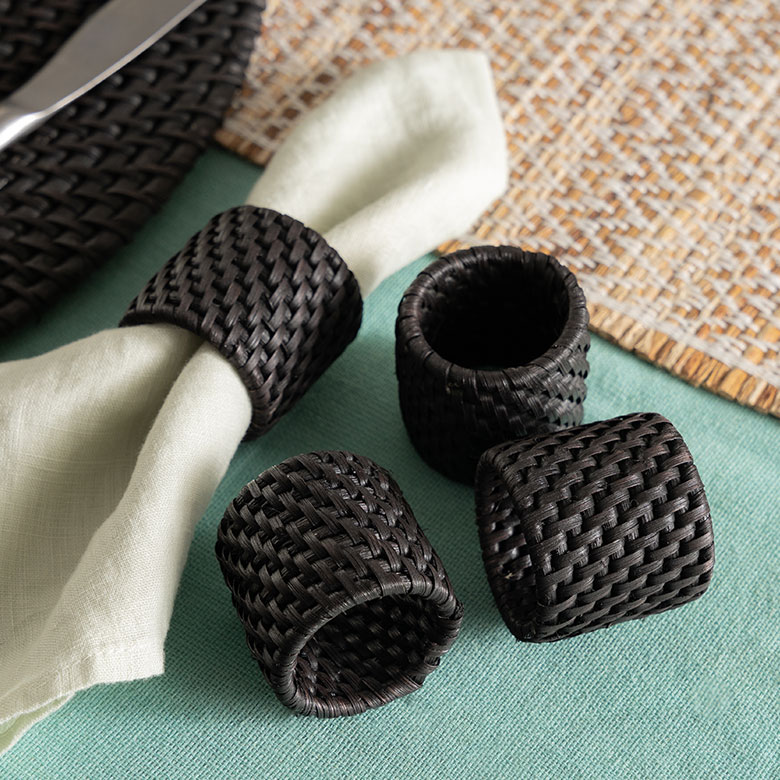 テーブル小物 テーブル装飾 パーティー クリスマス ハロウィン レストラン カフェ 店舗用 テーブルコーディネート テーブルセッティング テーブルナプキン 什器 撮影 ギフト プレゼント ナプキンリング 4個セット ラタン 籐 ブラック ナプキンホルダー ナプキン ホルダー リング ナフキン 約 W 4.5cm D 4.5cm H 4.5cm ナフキンリング ナフキンホルダー テーブルウエア ダイニング キッチン キッチン雑貨 おしゃれ 北欧 リゾート 雑貨 インテリア [set-14103]