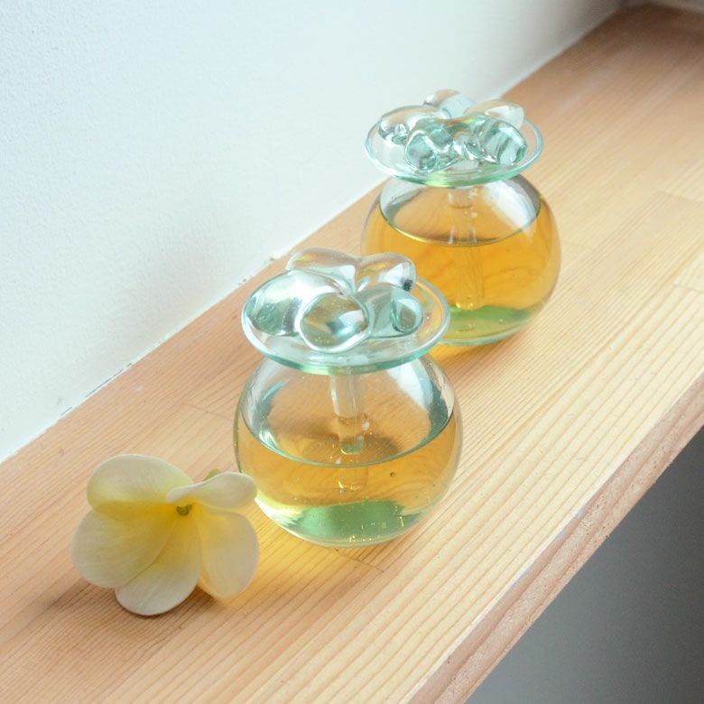 スパで使われているガラスのオイルボトル 食品衛生検査済み プルメリア アロマボトル(12750)]【スパボトル ガラス おしゃれ アロマ オイルボトル アメニティ おしゃれ リゾート 小物 ガラス容器 ガラス瓶 アジア雑貨 アジアン雑貨 オシャレ インテリア びん 小瓶 ガラスボトル 癒しグッズ プレゼント 食器】