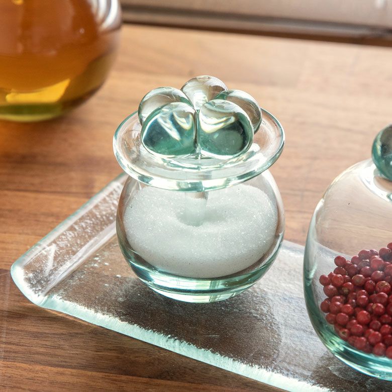 爽やかなガラスケースとウッド製フタのセット 【2色展開】ガラスケース フタ セット ウッド ガラス 取っ手付き set-6630【ガラス ガラスケース フタ ウッド セット 6×5cm 雑貨 コットンケース アメニティ バスルーム 洗面所 化粧品 収納 木製】