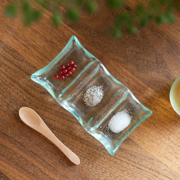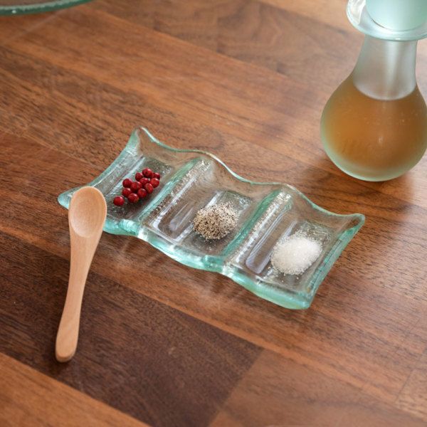 トレイ&トレー 新生活 食品衛生検査済み 曲線が優しい印象のガラスの三つ穴 アジアン トレイ[10026]【食器 薬味皿 醤油受け かわいい アクセサリー アジア アクセサリートレイ アジアン アジアン雑貨 アジア雑貨 ガラストレー デスクトレー トレイ トレー ナチュラル 小物 硝子 小物入れ 箸置き】