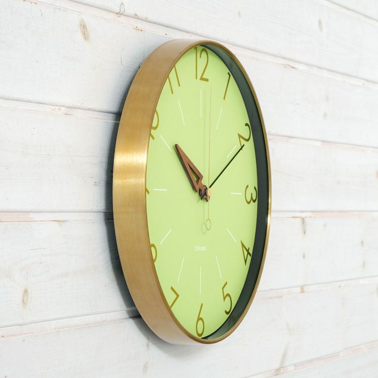 掛け時計 壁時計 円形 ステップ式 青 緑 茶 新築祝い ギフト 時計 壁掛け時計 丸型 直径28.5cm アルミ 木 ガラス グリーン ネイビー [90273]【 電波時計 ステップムーブメント アルミフレーム おしゃれ アンティーク調 クラシカル リビング ダイニング 寝室 ゴールド ライトグリーン ブルー】