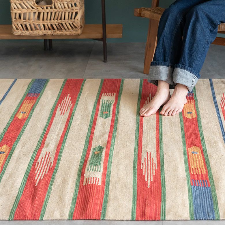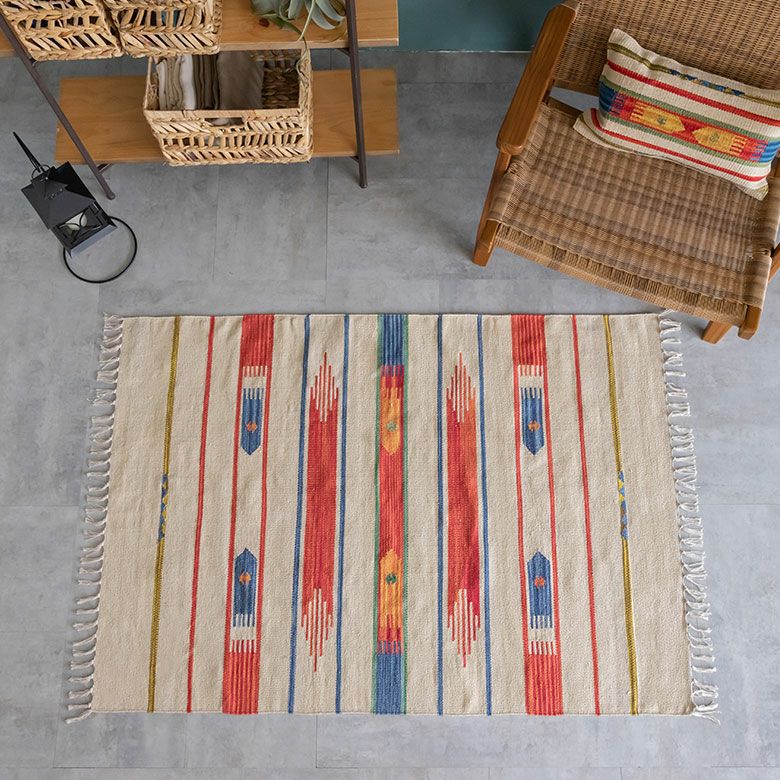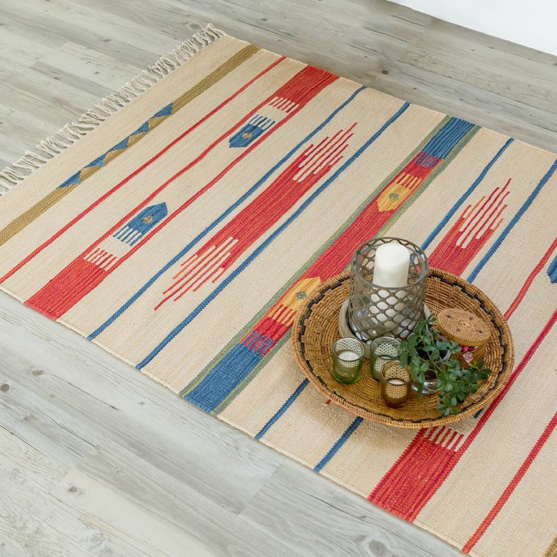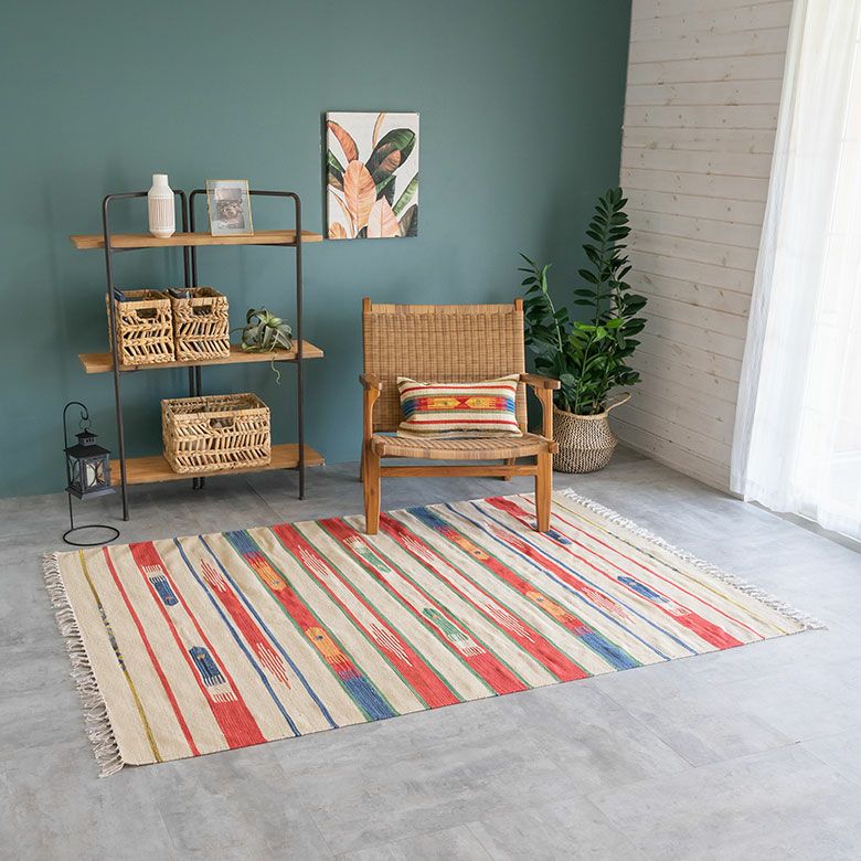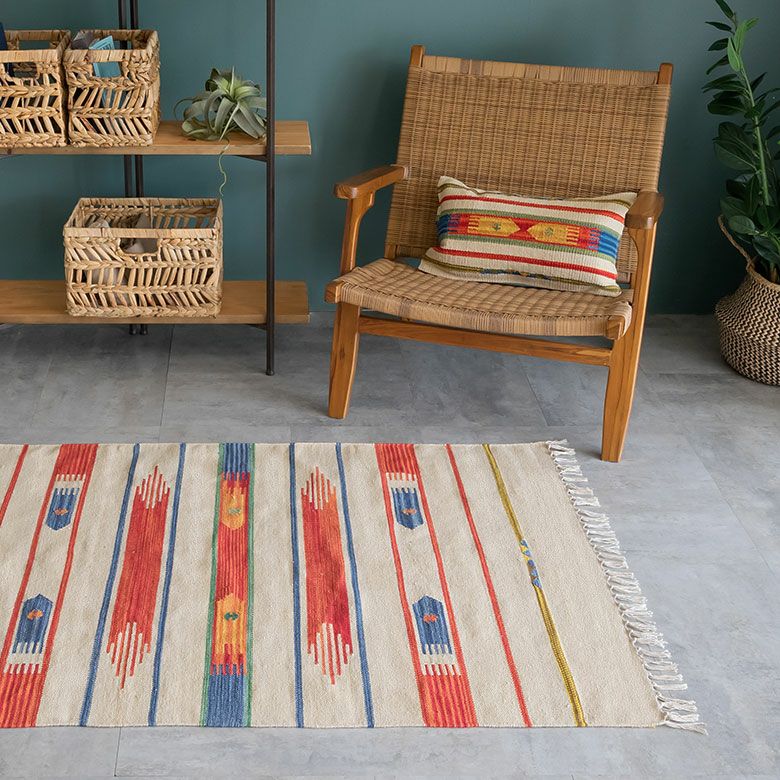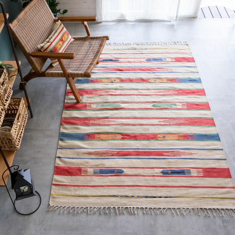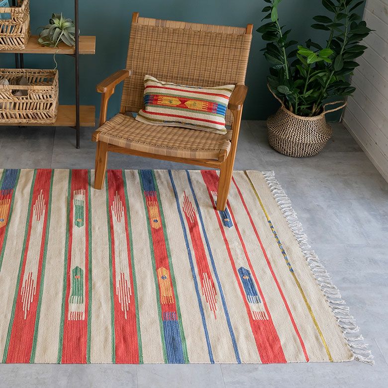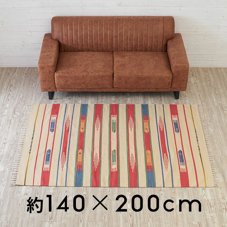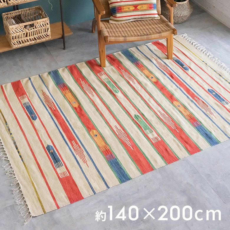 大注目のキリム調ラグ☆インテリアになるエスニックラグ キリムラグ コットン[Sサイズ]140×200cm[Aタイプ](31200)【 コットンラグ ラグ マット キリム インド綿 オルテガ エスニック ネイティブ 民族 カーペット マット ラグマット 140cm 絨毯 じゅうたん アジアンラグ アジアンカーペット らぐ 夏用 おしゃれ アジアン雑貨】