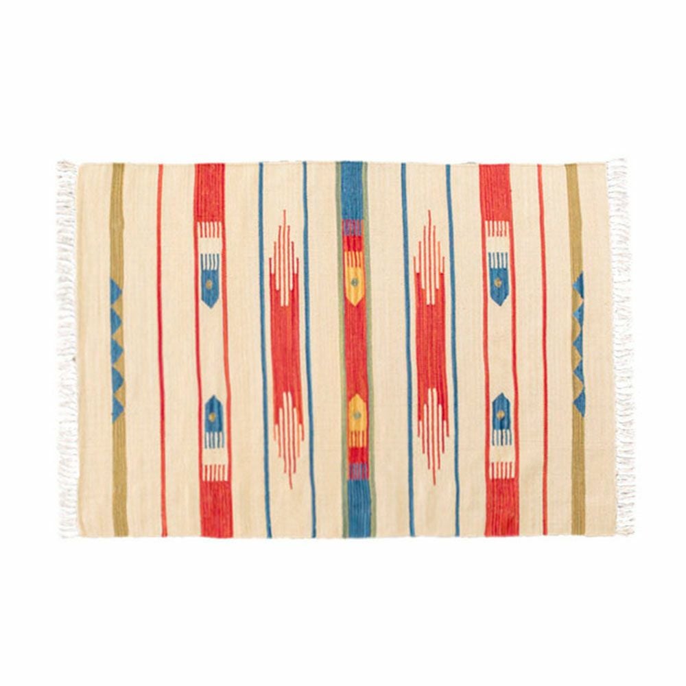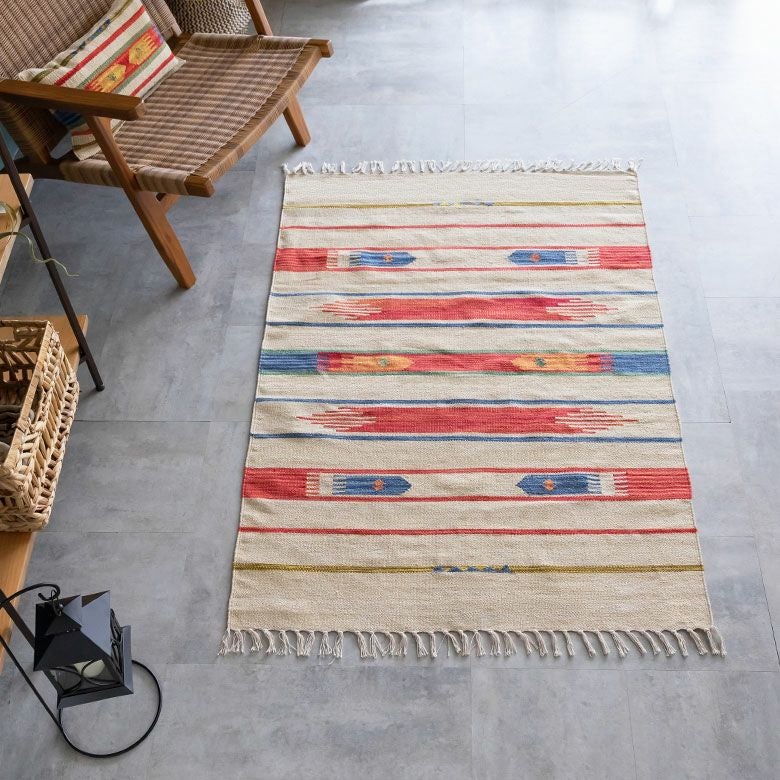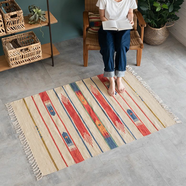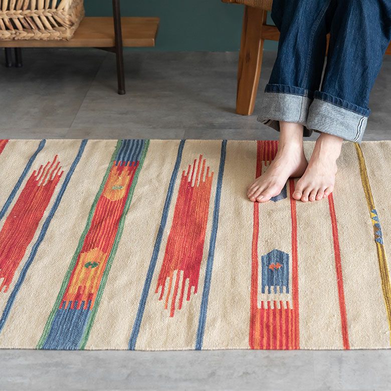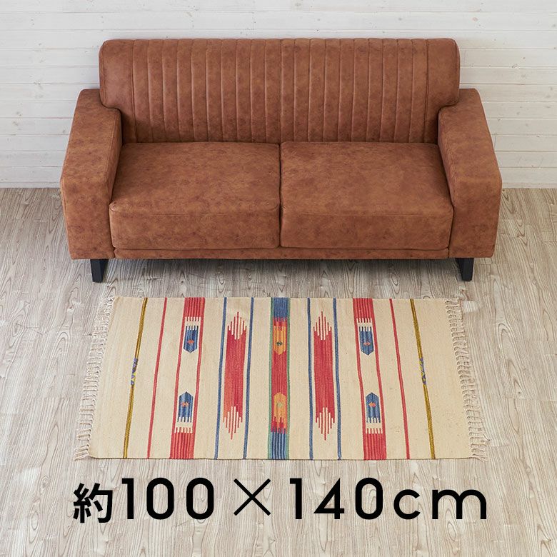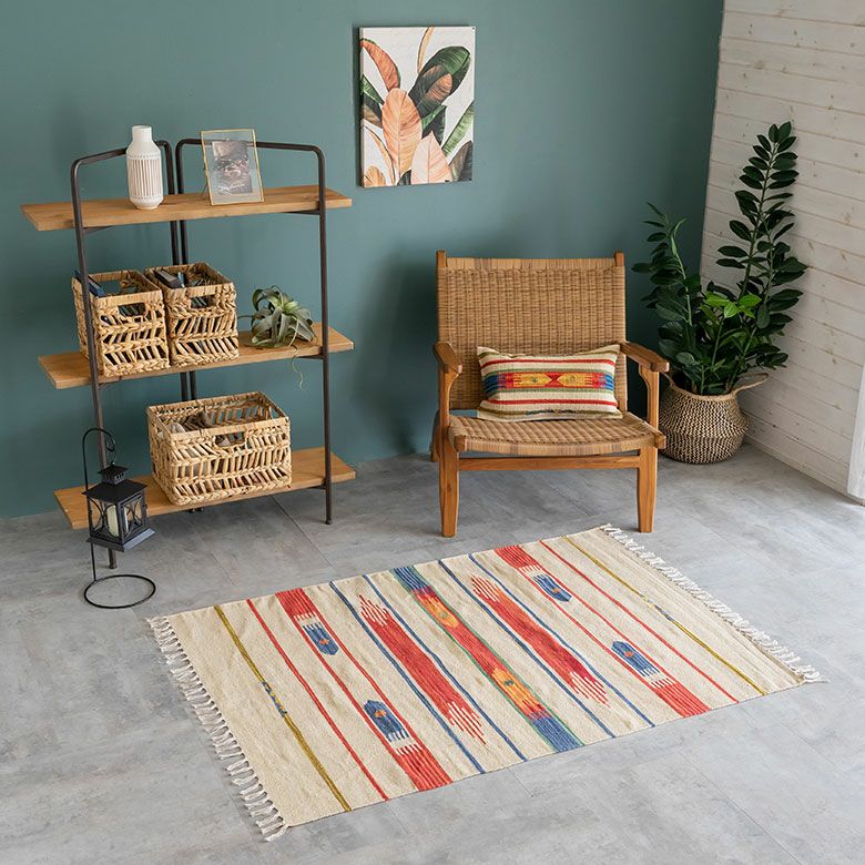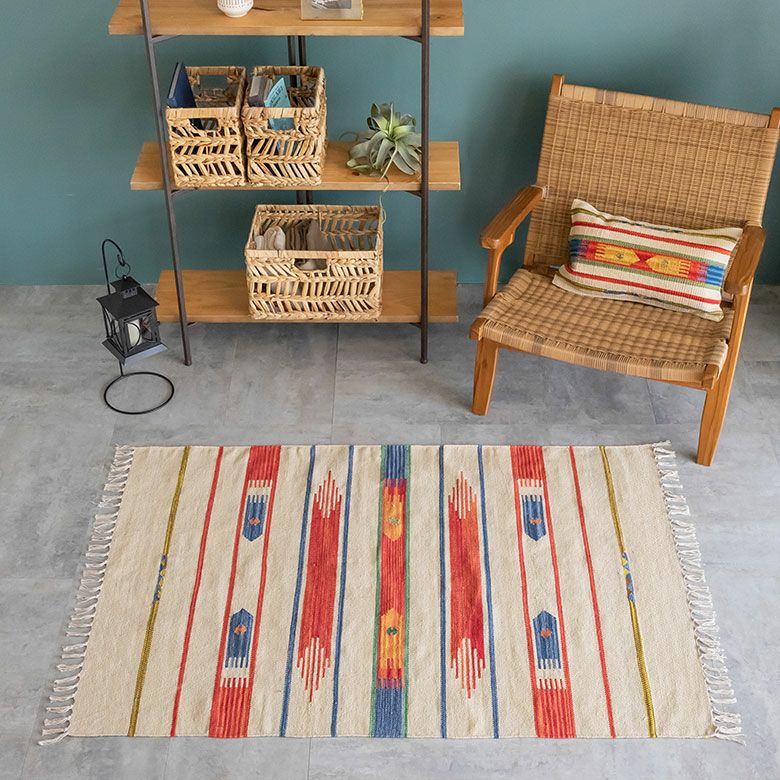 大注目のキリム調ラグ☆インテリアになるエスニックラグ キリムラグ コットン 100×140cm [Aタイプ] (31900)【 コットンラグ ラグ マット キリム インド綿 オルテガ エスニック ネイティブ 民族 カーペット マット ラグマット 100cm 絨毯 じゅうたん アジアンラグ アジアンカーペット らぐ 夏用 おしゃれ 】
