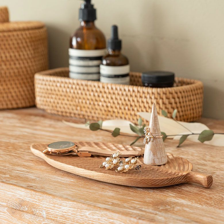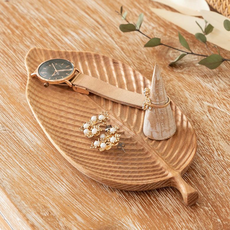 カフェ お菓子 おつまみ 木皿 ランチプレート 食器 ワンプレート ウッドトレイ 葉っぱ リーフ M ナチュラル 木製 トレイ ウッド 約 W 24cm D 11.2cm H 1cm [51304]【 トレー お皿 プレート デコレーション キッチン ダイニング パーティー パン チーズ テーブルコーディネート おしゃれ かわいい 北欧 リゾート バリ アジアン 雑貨 】