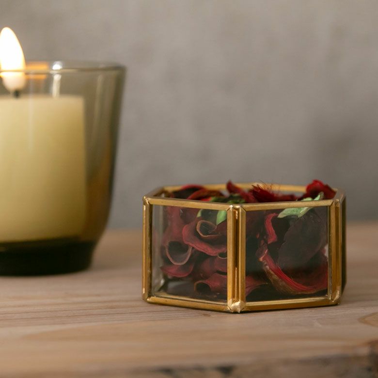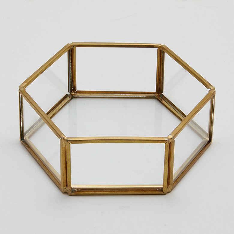 ピアス収納 イヤリング収納 クリア 透明 ゴールド プレゼント アクセサリーケース ガラスと真鍮 ガラスケース アクセサリー収納 六角形 Sサイズ [67049]【 ガラスケース ディスプレイ ジュエリーボックス ジュエリーケース ヴィンテージ 風 ビンテージ 風 アンティーク 風 おしゃれ 韓国 韓国インテリア アジアン 雑貨 】