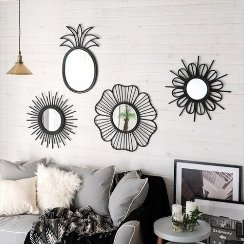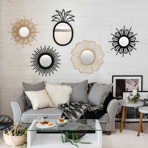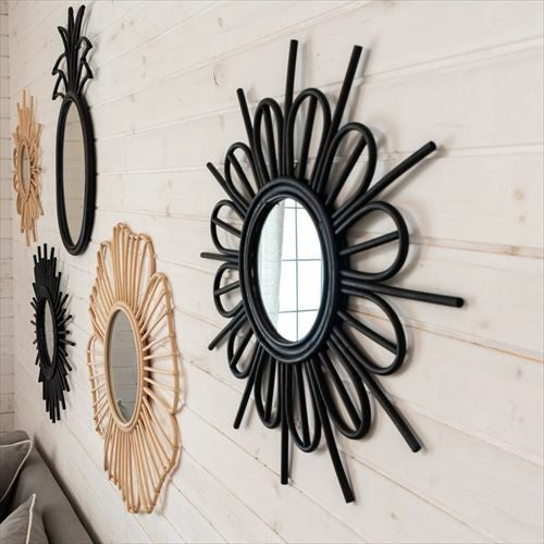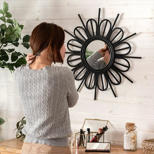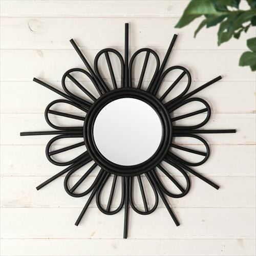 壁掛鏡 鏡 壁掛け式 吊り下げ ミラー デザインミラー 化粧鏡 ミラー 鏡 フラワーA 壁掛け ラタン アジアン 直径60cm ミラー部分径19cm[13708]【 壁掛けミラー 放射状 太陽 花形 ウォールミラー 壁掛け鏡 デザインミラー 円形 ウォールデコレーション インテリア アジアン雑貨 バリ島 リゾート おしゃれ 】