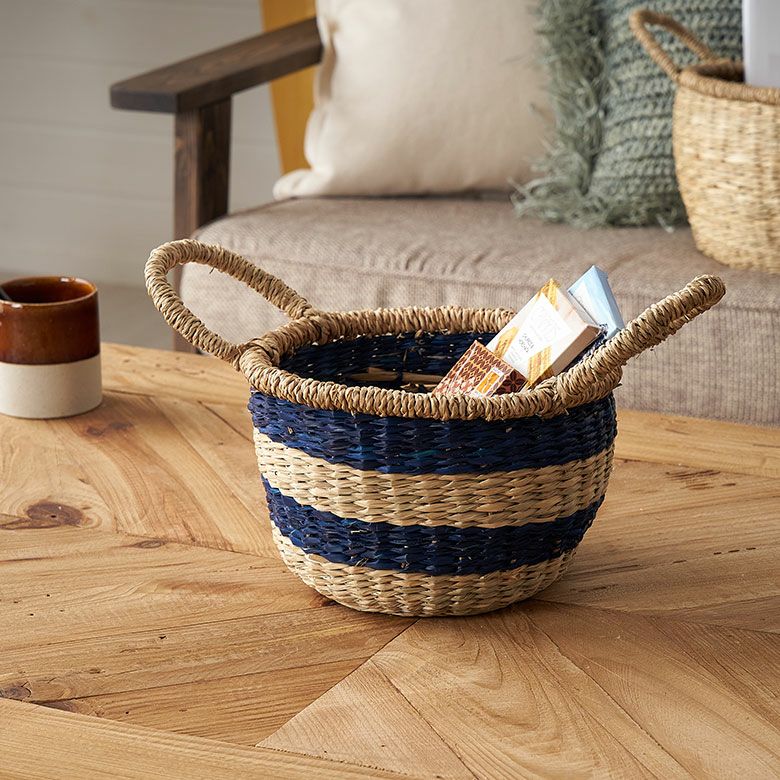 自立 ラウンド 小物収納 小物入れ 整理整頓 取っ手 ハンドル リビング収納 おもちゃ入れ ランドリー 洗濯 脱衣 リビング ダイニング キッチン 玄関 子供部屋 洗面所 プレゼント ギフト バスケット シーグラス 持ち手付き Sサイズ 約 W 22cm D 22cm H 14cm ナチュラル レッド ブルー かごバスケット 収納 天然素材 かご 籠 丸 円形 丸型 カゴ 小物入れ 収納ケース 収納かご 見せる収納 インテリア おしゃれ 北欧 雑貨 アジアン アジアン雑貨 [s-vn50]
