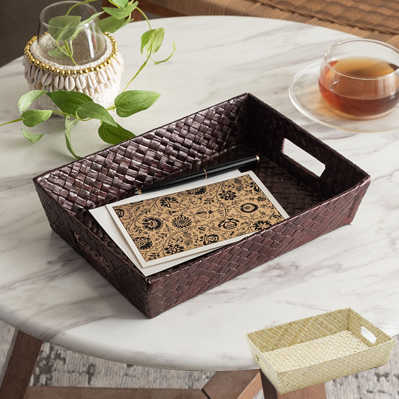 小物入れにちょうどいいバリ島の人気アジアン雑貨 パンダンで出来た持ち手付きバスケットトレイ M 2色展開 小物入れ トレイ バリ雑貨 アジアン雑貨 インテリア おしゃれ ステーショナリー デスクトレイ 小物トレー アクセサリートレー アクセサリー アクセサリートレイ アジア雑貨 南国リゾート [bt-117]