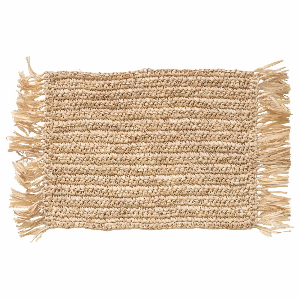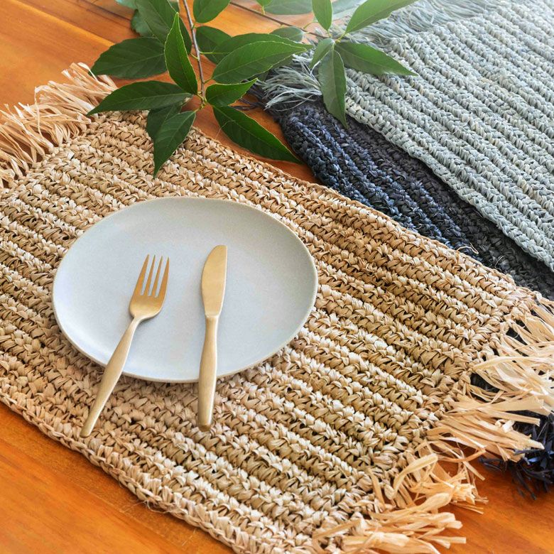 プレイスマット プレースマット キッチン雑貨 リゾート ランチョンマット 天然素材 ラフィア製 フリンジ付き 46cm×34cm [13880]【 ランチマット おしゃれ ラフィア椰子 ラフィア素材 麦わら かわいい インテリア 長方形 フリンジ ナチュラル リゾートインテリア アジアン 雑貨 アジアン雑貨 バリ島 】