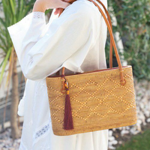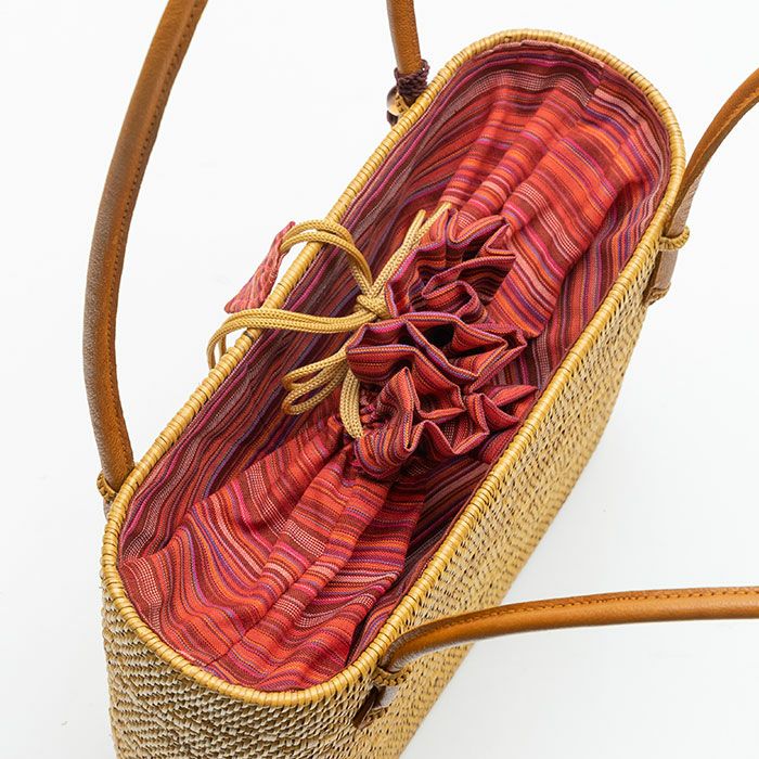 当店オリジナル!カラフルなタッセル付きで可愛さ倍増☆ アジア工房オリジナルタッセル付き アタで編まれたかごバッグ Dタイプ 【レッド】(2916-13022)【かごバッグ トートバッグ レディース カゴバッグ アジアンバッグ アタ タッセル ナチュラル バスケット 巾着付き きれいめ エスニック 浴衣 アジアン雑貨】