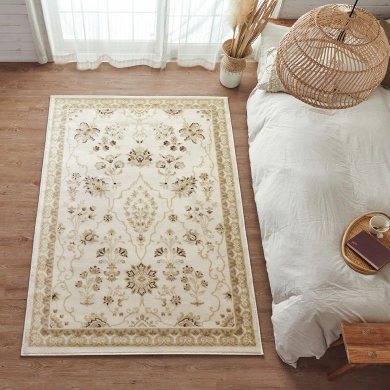 ペルシャ絨毯柄 アンティーク風 130×190 ベージュ 白 夏用 ラグ ペルシャ 風 ウィルトン織り 花柄 アイボリー 長方形 約 133 × 190cm 1.5畳 1.5帖 絨毯 ラグマット カーペット センターラグ オリエンタルラグ リビングラグ ペルシャ絨毯風 ペルシャ柄 おしゃれ 北欧 韓国 アジアン 家具 トライバル インテリア [eg84152]