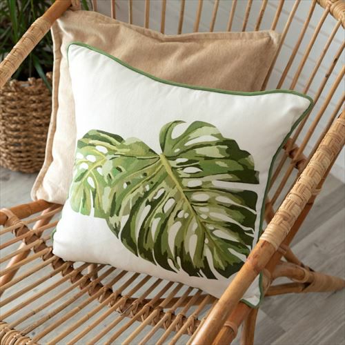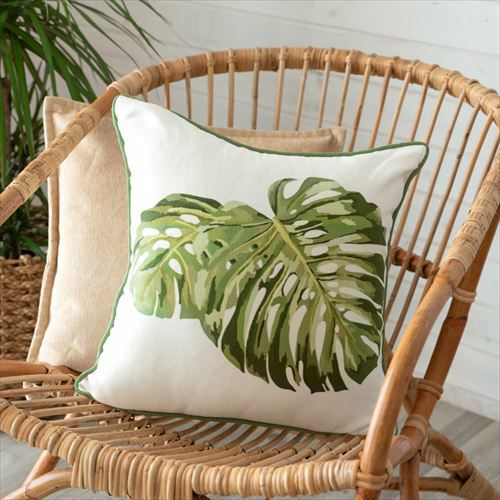 クッションカバー ボタニカル リゾートボタニカル トロピカル モンステラ柄 クッションカバー ホワイト 45×45cm [66550]【 ソファークッション ベッドクッション モンステラリーフ柄 ボタニカル 緑 45角 おしゃれ 北欧 アジアン雑貨 アジアン 雑貨 リゾート バリ島 ハワイ ハワイアン 】