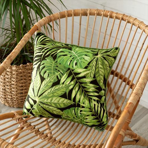 クッションカバー パームリーフ リーフ柄 ボタニカル グリーン 【メール便対応】リーフ柄 クッションカバー ブラック 45×45cm [66551]【 ソファークッション ベッドクッション リーフ柄 ボタニカル 緑 黒 ヤシの木 45角 おしゃれ 北欧 アジアン雑貨 アジアン 雑貨 リゾート バリ島 ハワイ 】