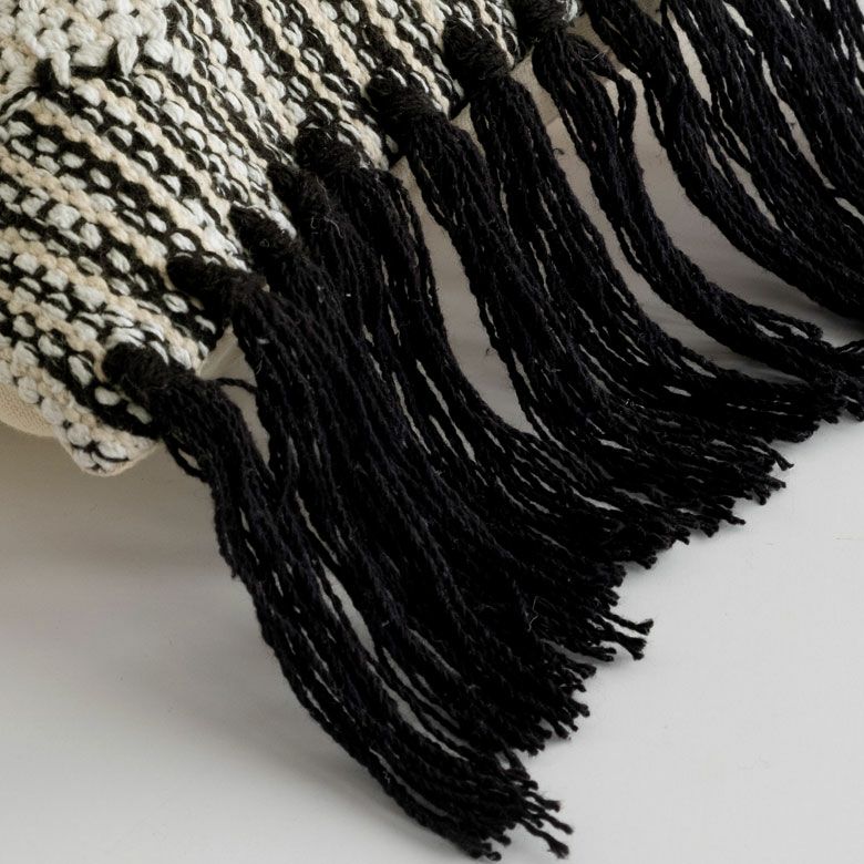 クッションケース 民族柄 民族調 サーフィン コットン 綿 長方形 クッションカバー クッション オルテガ柄 エスニック フリンジ 30×50cm 白黒 BOHO [34422]【 カバー おしゃれ お洒落 エスニック ボーホー モノトーン 四角 オールシーズン 春 夏 秋 冬 インテリアファブリック アジアン アジアン雑貨 】