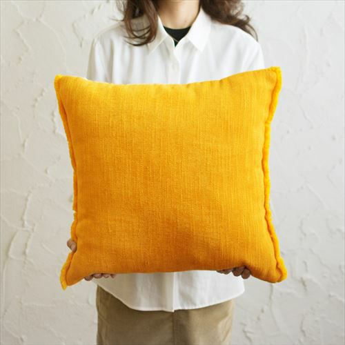 インテリアのアクセントになるビタミンカラーのクッションカバー。 【メール便対応】フリンジ付き リネンキャンバス クッションカバー 45×45cm イエロー(66557)【クッション カバー 北欧 おしゃれ 正方形 45角 四角 リネン 腰あて ピロークッション 海外 ファブリック プレゼント おしゃれ メール便 模様替え ジャガード調】