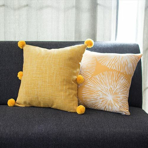 ポンポンがアクセントのメランジクッションカバー。 【メール便対応】ポンポン付き メランジ クッションカバー 45×45cm イエロー (66555)【クッション カバー 北欧 おしゃれ 正方形 四角 45角 ガーリー かわいい ジャガード 腰あて ピロークッション 海外 ファブリック プレゼント おしゃれ 模様替え ボンボン フリンジ タッセル】