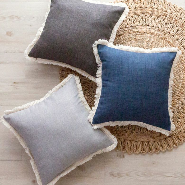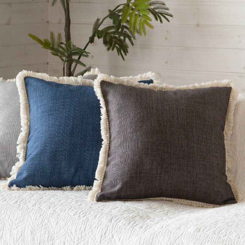 クッション ファブリック ピロークッション カバー 模様替え 【メール便対応】クッションカバー フリンジ 無地 シンプル 45×45cm [66937]【 正方形 ホワイト ネイビー グレー カジュアル ナチュラル バイカラー オールシーズン おしゃれ リゾート 北欧 モダン アジアン雑貨 アジアンリゾート 】