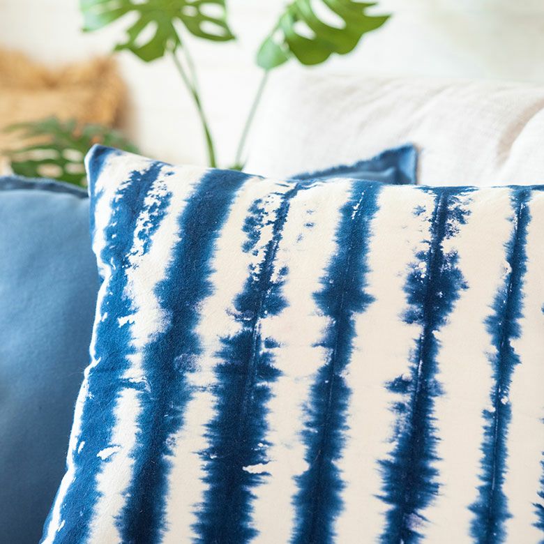 夏仕様 45cm×45cm ファブリック ピロークッション リビング 【メール便対応】 クッションカバー クッション カバー タイダイ インディゴ ブルー 45×45cm 正方形 [34502]【 絞り染め 洗える 夏 春 青 波 海 コットン 綿 ソファ おしゃれ インテリア 北欧 サーフ ビーチリゾート 海系 マリン リゾート コースタル アジアン 】