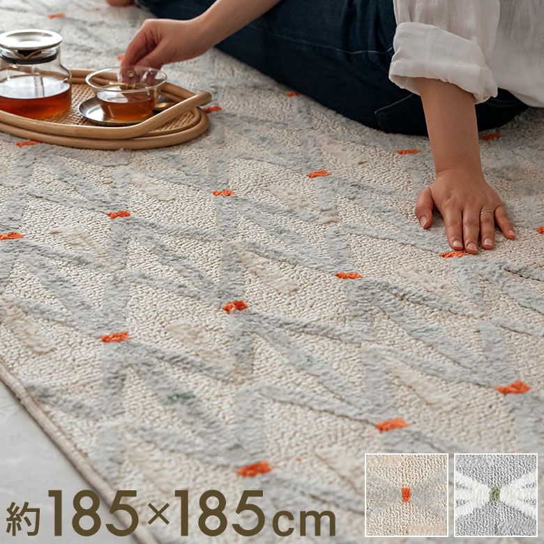 敷物 マット オシャレ 模様 デザイン アイボリー グレー ラグ ラグマット タフト 185×185cm 国産 幾何学柄 防ダニ [96040]【 カーペット おしゃれ 正方形 ラグ 絨毯 じゅうたん オールシーズン 春 夏 秋 冬 日本製 タフト織り ジオメトリック デザインラグ ポリエステル 洗濯可 コンパクト 幾何学 幾何学模様 西海岸 185cm】