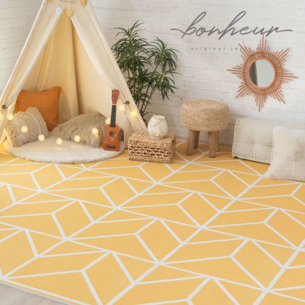 サイドパーツ付 ラグ ジョイント かわいい インテリア 雑貨 ジョイントマット プレイマット 約 W 60cm D 60cm H 1.2cm フロア マット ベビー 赤ちゃん マスタード [84083-mt]【 Bonheur ボヌール ニュアンスカラー 幼児 子供 キッズ 厚手 大判 正方形 防音 床 キズ防止 撥水 子供部屋 北欧 シャビーシック おしゃれ EVA アジアン 】