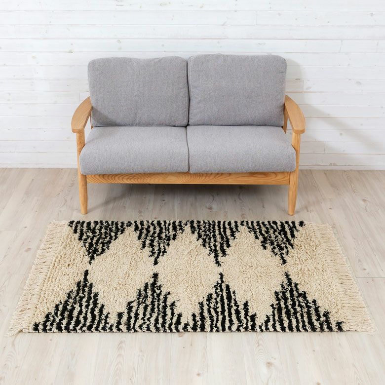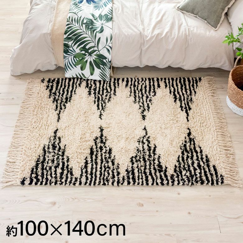 シャギーラグ ダイヤ ライン コーディネート コットン 100×140 ラグ ラグマット ダイヤ柄 ダイヤモンド シルエッ ト デザイン 100×140cm 白黒 BOHO [34415]【 カーペット 絨毯 じゅうたん おしゃれ お洒落 エスニック ボーホー モノトーン 長方形 オールシーズン 春 夏 秋 冬 厚手 敷物 マット アジアン アジアン雑貨 】
