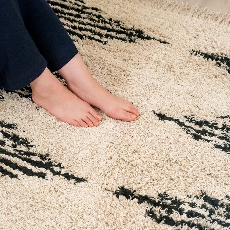 シャギーラグ ダイヤ ライン コーディネート コットン 140×200 ラグ ラグマット ダイヤ柄 ダイヤモンド シルエッ ト デザイン 140×200cm 白黒 BOHO [34416]【 カーペット 絨毯 じゅうたん おしゃれ お洒落 エスニック ボーホー モノトーン 長方形 オールシーズン 春 夏 秋 冬 厚手 敷物 マット アジアン アジアン雑貨 】
