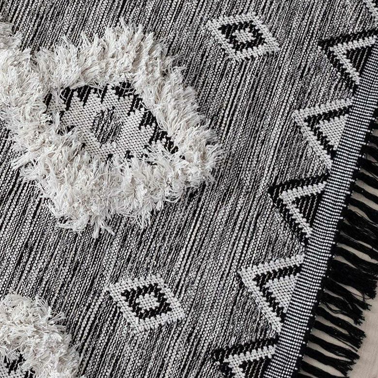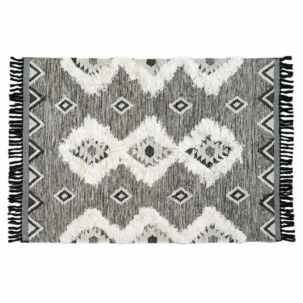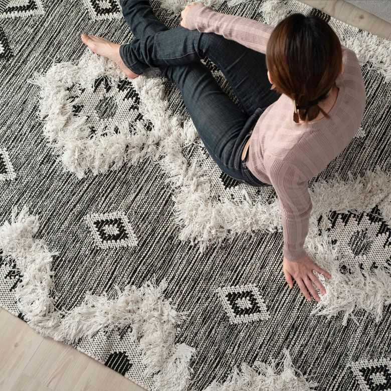 シャギーラグ ダイヤ ライン コーディネート コットン 140×200 ラグ ラグマット ダイヤ柄 ダイヤモンド シルエッ ト デザイン 140×200cm 白黒 BOHO [34416]【 カーペット 絨毯 じゅうたん おしゃれ お洒落 エスニック ボーホー モノトーン 長方形 オールシーズン 春 夏 秋 冬 厚手 敷物 マット アジアン アジアン雑貨 】