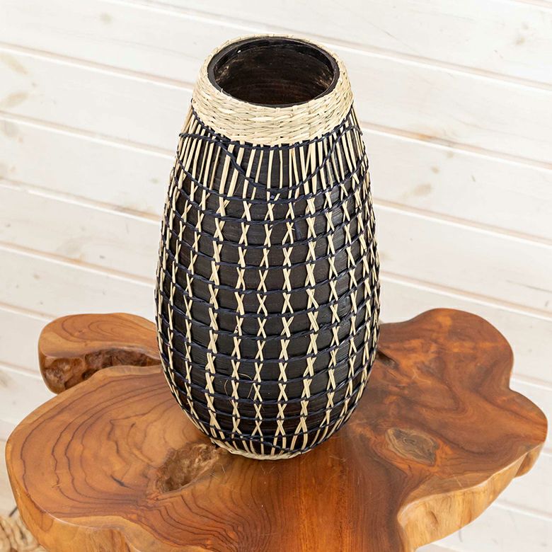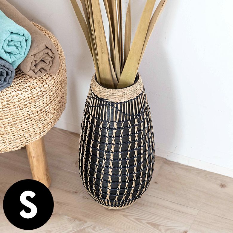 ハンドメイド リビング 玄関 寝室 置物 置き物 インテリア フラワーベース バンブー製 シーグラス製 水入れ不可 壺型 W 19cm D 19cm H 39cm [51233]【 花瓶 花びん 花器 ドライフラワー アートプランツ フェイクグリーン オブジェ おしゃれ リゾート BOHO トライバル モダン アフリカン エスニック アジアン雑貨 】