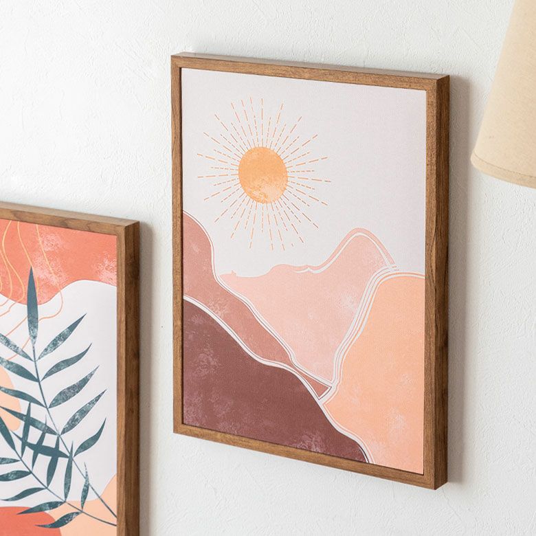 キャンバス アート モダンアート 軽量 縦長 ナチュラル ベージュ アートパネル 山と太陽 フレーム付き 海外インテリア 幅30×高さ40cm [67082]【 壁掛けアート ポスター ファブリックパネル アートポスター インテリアアートパネル 玄関 リビング おしゃれ 北欧 スカンジナビア モダン アジアン雑貨 アジアン 雑貨 】