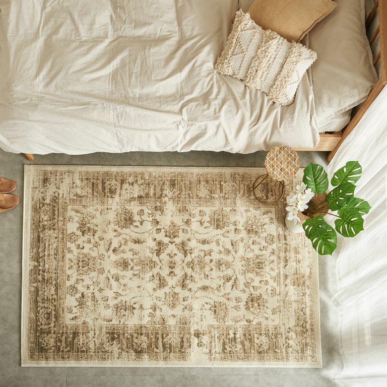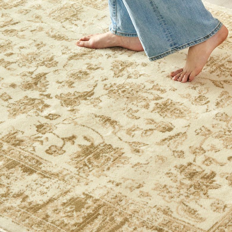 ペルシャ絨毯柄 アンティーク 風 130×190 ベージュ 白 夏用 ラグ ペルシャ 風 ウィルトン織り 花柄 アイボリー 長方形 約 133 × 190cm 1.5畳 1.5帖 絨毯 ラグマット カーペット センターラグ オリエンタルラグ リビングラグ ペルシャ絨毯風 ペルシャ柄 おしゃれ 北欧 韓国 アジアン 家具 トライバル インテリア eg84163