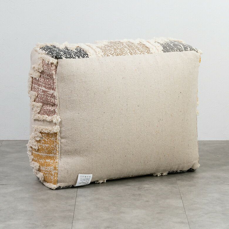 ベランピング リビング 腰掛け ビーズクッション オールシーズン プフ クッション オットマン スツール ナチュラル アイボリー W 55cm D 55cm H 37cm [34441-mt]【 raha ラーハ フロアクッション ダイヤ柄 椅子 チェア 座椅子 四角 スクエア おしゃれ かわいい BOHO ナチュラル 北欧 リゾート モロッカン ボヘミアン サーフ ミックス マルチ 】