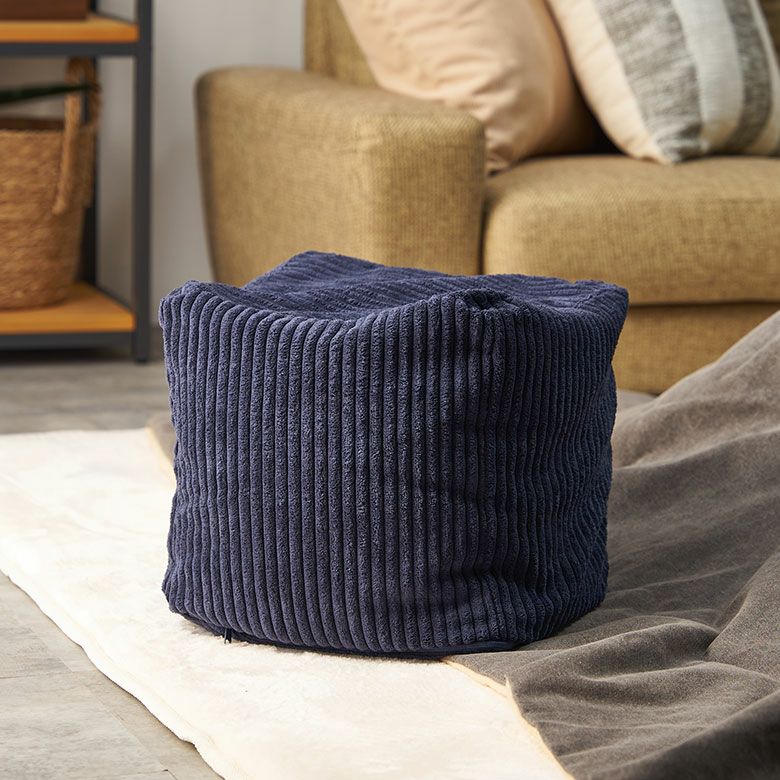 ベランピング リビング 腰掛け ビーズクッション オールシーズン プフ クッション オットマン スツール ブルー 青 W 55cm D 55cm H 37cm [34443-bl]【 raha ラーハ フロアクッション シェブロン デニム 椅子 チェア 座椅子 四角 スクエア おしゃれ かわいい BOHO ナチュラル 北欧 リゾート モロッカン ボヘミアン サーフ アジアン 雑貨】