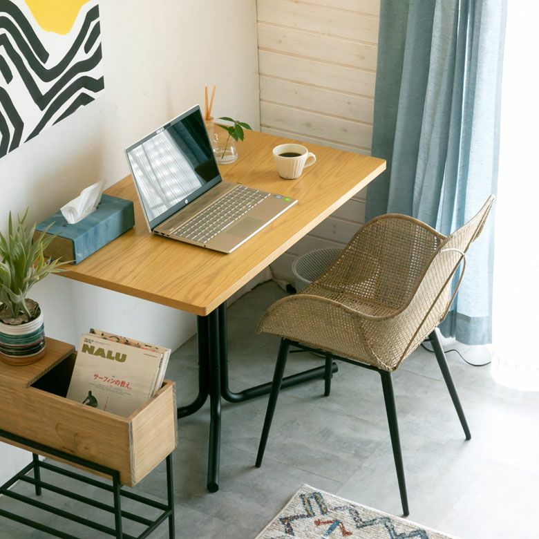 テーブル コーヒーテーブル デスク 天然木 オーク ダイニング カフェ風テーブル 木製 スチール ナチュラル ブラウン 長方形 W 100 × D 60 × H 67 cm カフェテーブル ダイニングテーブル カウンターテーブル 食卓 一本脚 2人掛 2人用 おしゃれ カフェ バー 飲食店 レストラン 西海岸 北欧 ビーチハウス ヴィンテージ [91082-na]