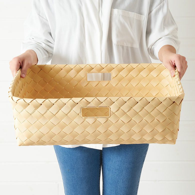 汚れに強い 丈夫 ランドリーバスケット ウォッシャブル フェイク 四角 荷物入れ 収納ケース 小物入れ ベッド下収納 衣装ケース 脱衣かご リビング 洗面所 キッチン ギフト プレゼント かご バスケット 洗える 持ち手付き フェイクシダー 白樺風 約 W 50cm D 36cm H 16cm ポリエチレン製 浅型タイプ 丸洗い 白樺かご風 収納バスケット 収納ボックス 収納かご ワイド カラーボックス対応 インナーボックス おしゃれ 北欧 インテリア 雑貨 アジアン [f-66]