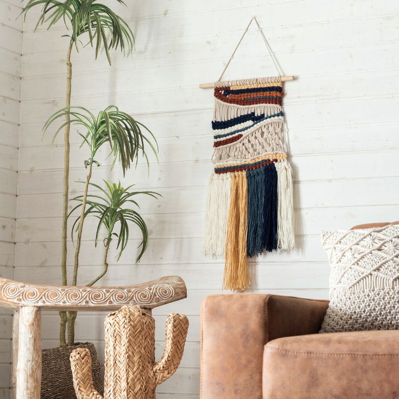 ハンドメイド BOHO ボヘミアン ウィービング クロシェ タペストリー マクラメ編み マクラメロープ 壁掛け コットン インド 約 W 35cm D 72cm H 1cm [34494]【 インテリア 壁飾り ウォール デコレーション アート おしゃれ 北欧 リゾート ナチュラル エスニック 韓国 韓国インテリア 雑貨 アジアン バリ島 】