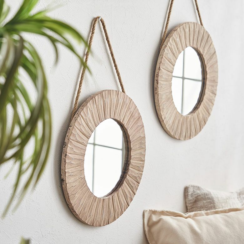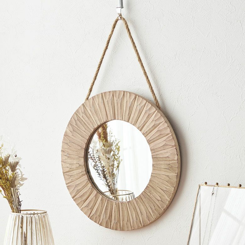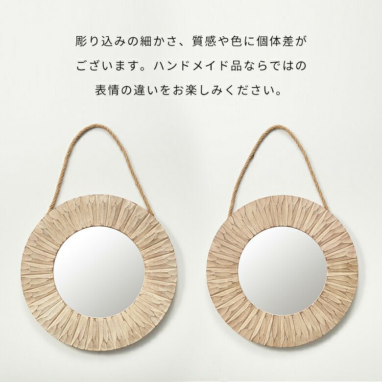 ラウンド インテリアミラー 壁にかける 丸い鏡 玄関鏡 鏡 ミラー 壁掛けミラー 立て掛け 木製 円形 丸型 丸鏡 約 W 35.5 × D 2 × H 35.5 cm 鏡直径 約20cm かがみ ウォールミラー 姿見 化粧鏡 シャビーシック ロープ付き ウォールデコレーション アンティーク 風 おしゃれ かわいい 北欧 アジアン雑貨 アジアン 雑貨 [65340]