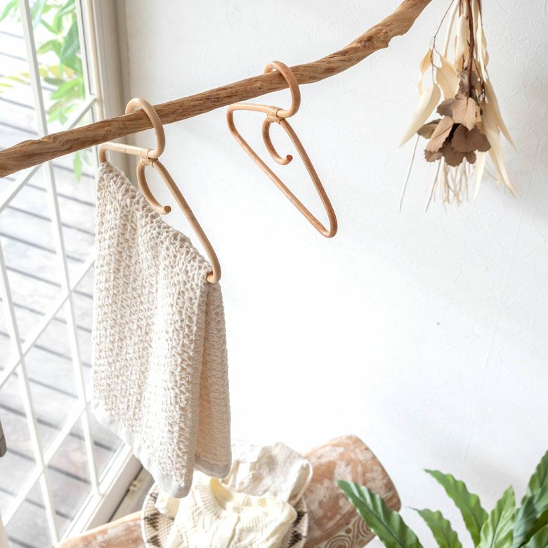 ラタンハンガー 見せる収納 ディスプレイ カフェ 店舗 軽量 ハンガー ラタン 籐 Sサイズ 小さい ミニ ナチュラル ライトブラウン 約 W 26cm D 1cm H 18cm [13958]【 タオルハンガー キッズハンガー ベビーハンガー キッズ 子供用 赤ちゃん ベビー 子供部屋 軽い 丈夫 かわいい おしゃれ 北欧 リゾート アジアン 雑貨 バリ島 】