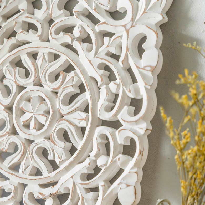 南国 リゾートインテリア パネル オブジェ 立て掛け 木彫り レリーフ 壁掛け アラベスク 白 ホワイト インド製 正方形 約 W 30 × D 30 × H 1.5 cm ウッドカービング アートパネル 木彫刻 壁飾り アジアンレリーフ ウォールデコレーション おしゃれ バリ島 バリ雑貨 北欧 アジアン 雑貨 アジアン雑貨 韓国インテリア [34558]