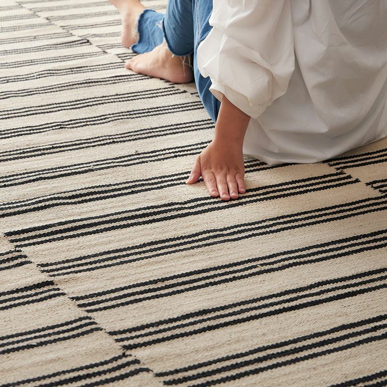 じゅうたん 敷物 モノトーンラグ 白黒ストライプ シンプル ラグ モノトーン ボーダー ストライプ 幾何柄 インド製 コットン100% 長方形 約 200×250cm 約 3畳 ラグ ラグマット 夏用 カーペット コットンラグ フリンジ付き リビング ダイニング インテリア おしゃれ 北欧 綿100% アジアン 雑貨 BOHO 海外インテリア [34529]