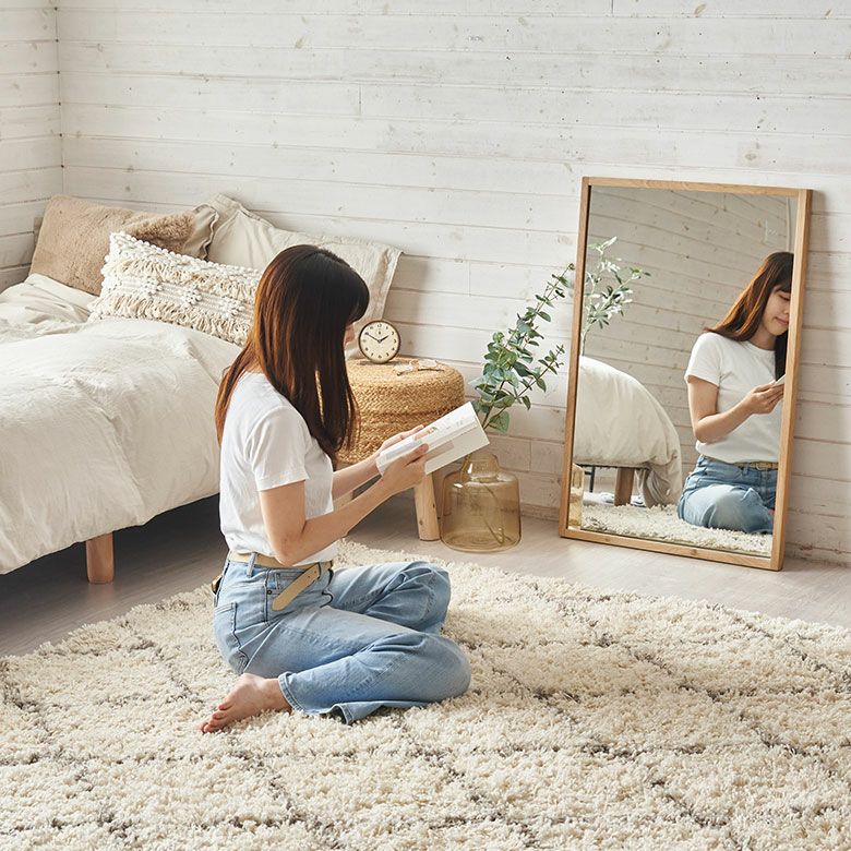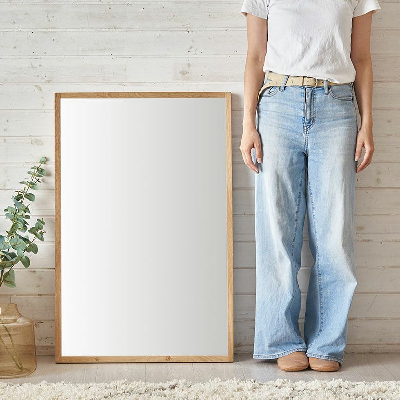 インテリアミラー 無垢材 大きめ パウダールーム 洗面所 鏡 壁掛けミラー 長方形 オーク材 ナチュラル 約 W 58cm D 3cm H 88cm ミラー ウォールミラー 飛散防止 かがみ 化粧鏡 壁かけ鏡 立て掛け鏡 ウォールデコレーション リビング 寝室 玄関 トイレ おしゃれ 北欧 インテリア シンプル 雑貨 アジアン雑貨 [91581]