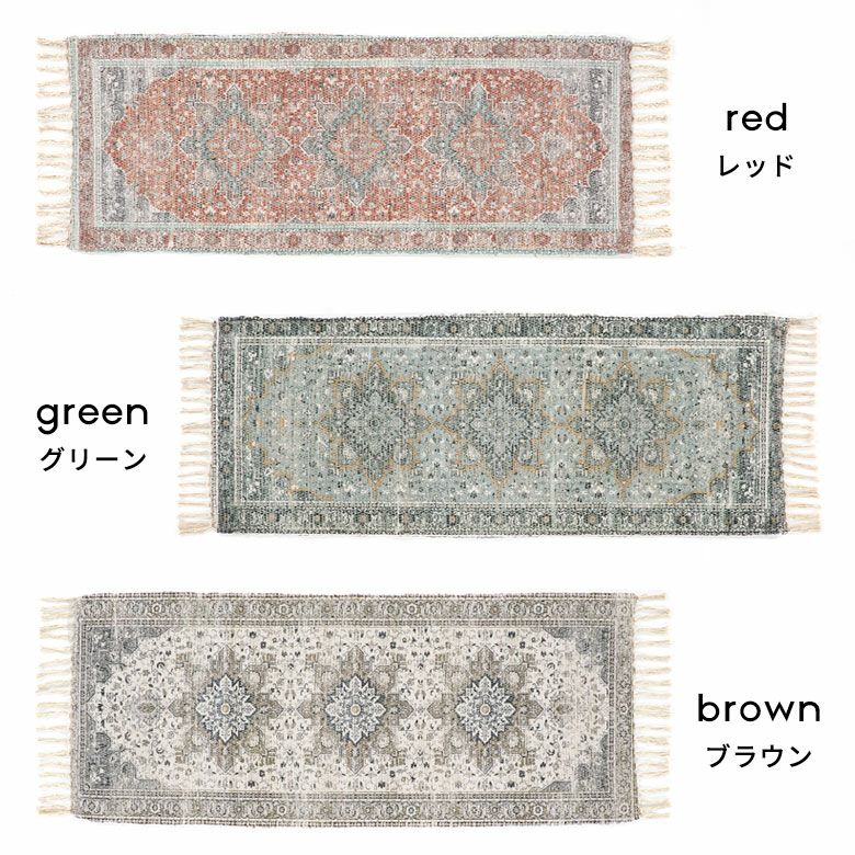 アクセントラグ リビング ダイニング 寝室 ベッド カーペット 絨毯 アンティーク調 ペルシャ絨毯調 ビンテージ風 ビンテージ調 オールシーズン 春 夏 秋 冬 ギフト プレゼント ラグマット ラグ キッチンマット メダリオン柄 長方形 約 W 45cm D 120cm H 1cm レッド グリーン ベージュ インド ペルシャ絨毯風 オリエンタル アンティーク風 キッチン 玄関 ソファ マット おしゃれ リゾート モロッカン エスニック アジアン 雑貨 アジアン雑貨 [34593]