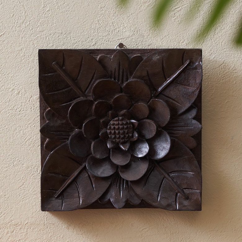 リゾート パネル オブジェ 立て掛け レリーフ ウッドレリーフ 木彫り木製パネル 木製彫刻アート 法人 ホテル ヴィラ レストラン カフェ スパ サロン ギフト レリーフ 木彫り 彫刻 アジアンレリーフ 壁掛け アート 約W 45 x D 2.5 x H 45 cm 壁掛け アート 壁掛け 飾り 木彫りの壁掛け 木の飾り インテリア 木彫りのフラワーモチーフのアジアンレリーフ ウォールデコレーション バリ ハワイ アジアン雑貨 アジアン 雑貨 [11522]