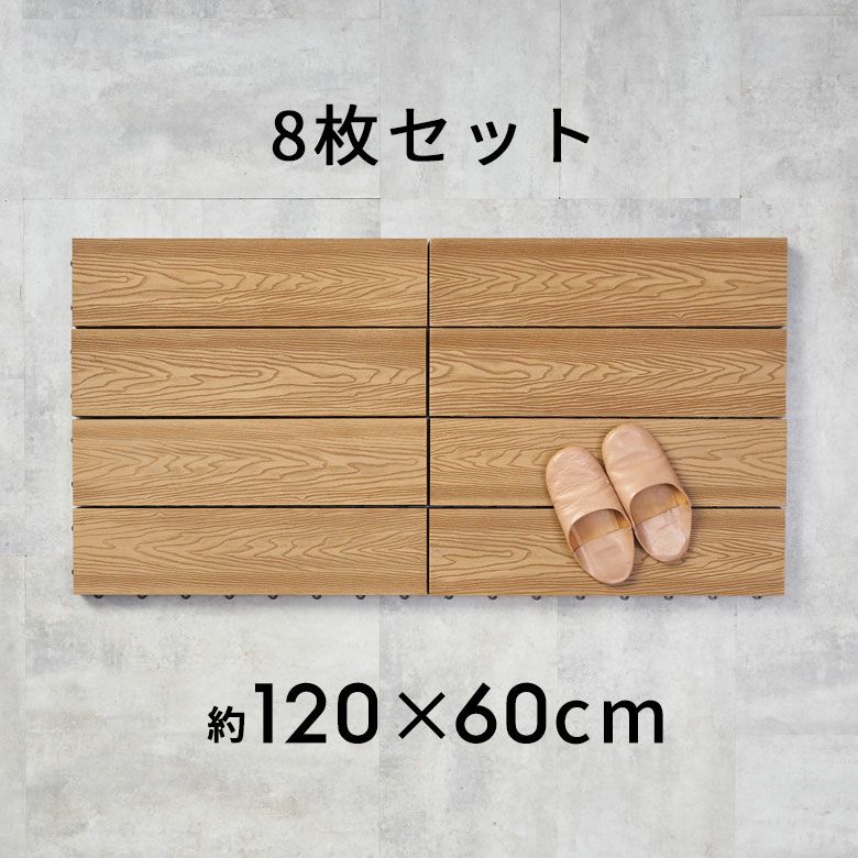 簡単設置 エクステリア ベランダタイル リアル木目 テラス ビーチ サーフ ガーデニング ジョイントタイル ジョイントパネル ジョイントマット アウトドアリビング 床材 野外 屋外 ウッドデッキタイル 人工木 樹脂 ロング ワイド 8枚セット ウッドパネル ウッドタイル 約 W 60cm D 15cm H 3.6cm デッキパネル ウッドデッキ ジョイント ウッド デッキ パネル タイル 床 フロアデッキ ベランダ ガーデン 庭 DIY おしゃれ 北欧 リゾート アジアン [84291]