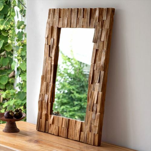 鏡 スクエア 四角 角型 玄関鏡 木 茶色 リサイクルウッド ミラー 壁掛け 木製 フレーム 木枠 正方形 チークウッド ナチュラル Lサイズ W50xD3.5xH68cm [10868]【 鏡 ミラー 枠付き ウォールミラー かがみ カガミ リビング 玄関 廊下 トイレ 寝室 洗面所 ドレッサー 化粧台 立て掛け おしゃれ 北欧 和風 和室 アジアン 雑貨 】