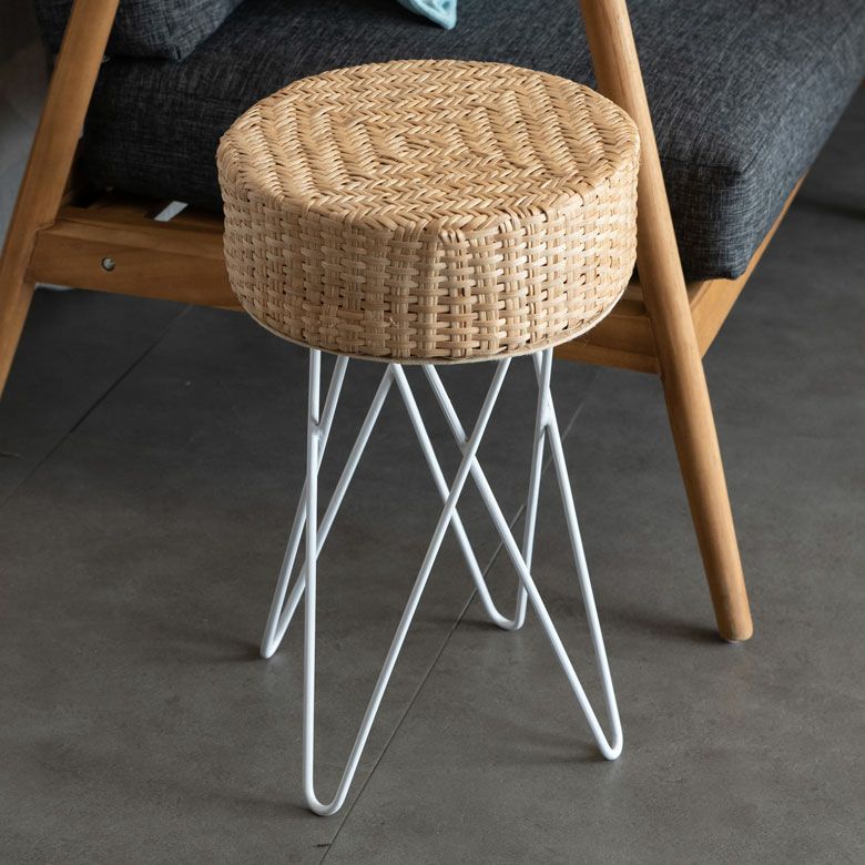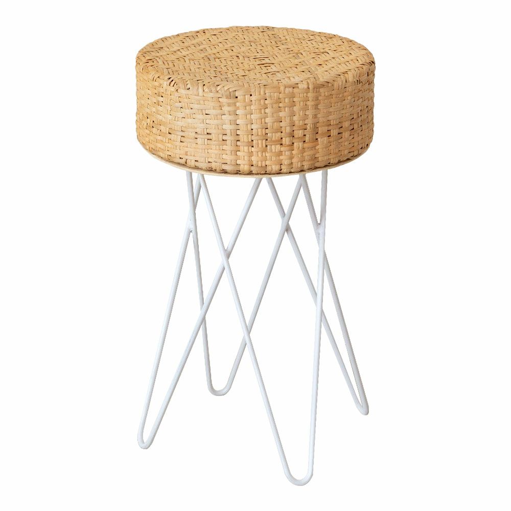 いす ラウンジチェア デザイン家具 リビングチェア おしゃれ スツール ラタン製 ラタンチェアー ラタンチェア アイアン製 クロス脚 丸型座面 座面高52cm ホワイト[13715]【 椅子 一人掛け チェア 籐家具 背もたれ無し リビングチェア 玄関 西海岸 シャビーシック BOHO 北欧 リゾート アジアン家具 カフェ風 ホテル 在宅勤務 】