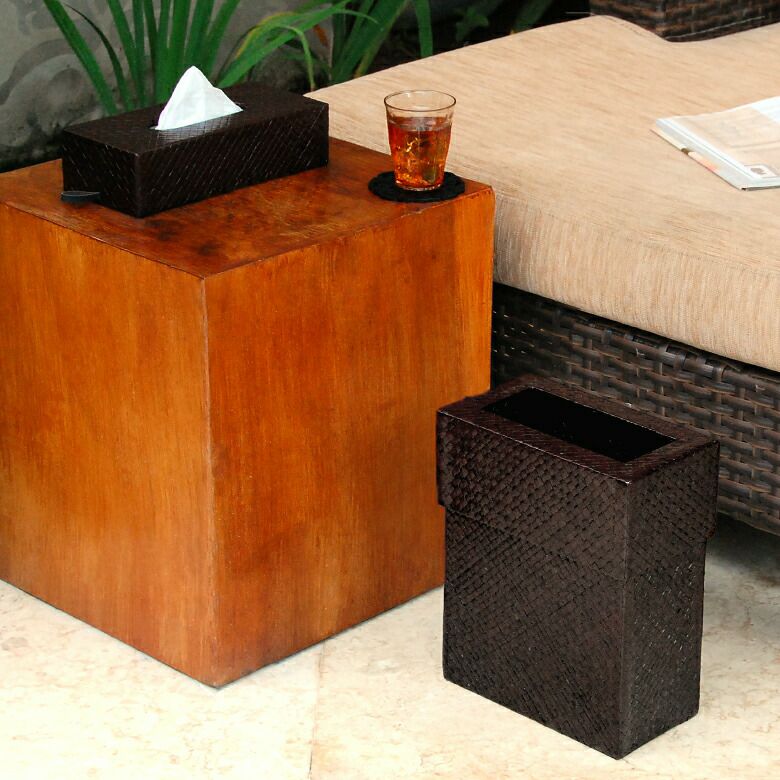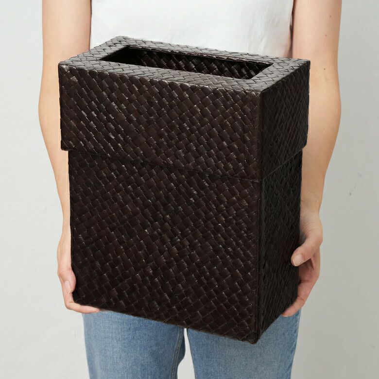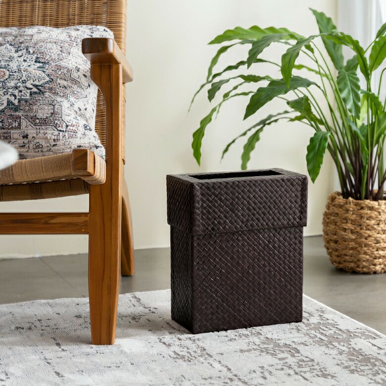ゴミ袋が見えない二重構造だから見た目も◎まるでレザーのような編み目のゴミ箱。バリ島の人気アジアン雑貨 ゴミ箱 パンダン製 長方形 中の袋が 見えない 被せるタイプ おしゃれ ごみ箱 見えない ふた付き 小さい ミニ ダストボックス 縦型 アジアン リビング バリ雑貨 モダン アジアン雑貨 ダークブラウン インテリア 洗面台 ホテル バスルーム 蓋付き [11560]