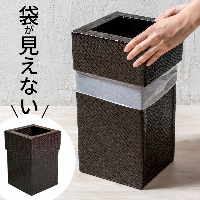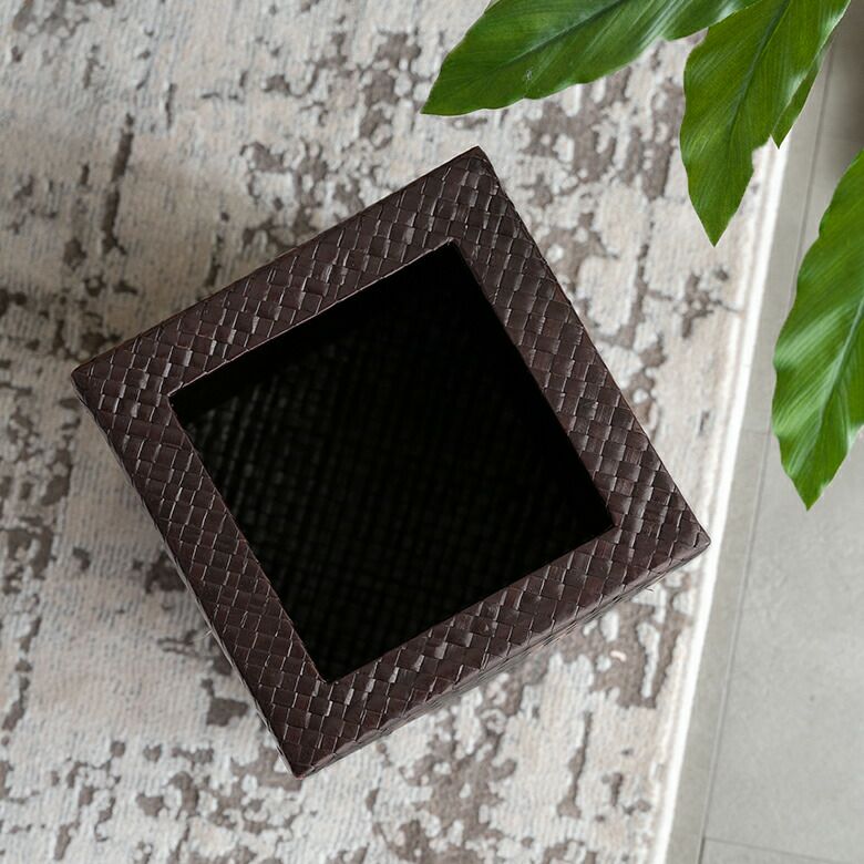 ゴミ袋が見えない二重構造だから見た目も◎まるでレザーのような編み目のごみ箱。バリ島の人気アジアン雑貨 ゴミ箱 パンダン製 正方形 中の袋が 見えない 被せるタイプ ダストボックス アジアン バリ雑貨 アジアン 雑貨 おしゃれ ボックス 見えない モダン エスニック ナチュラル ゴミ箱 ごみ箱 インテリア 寝室 アジアン雑貨 [11562]
