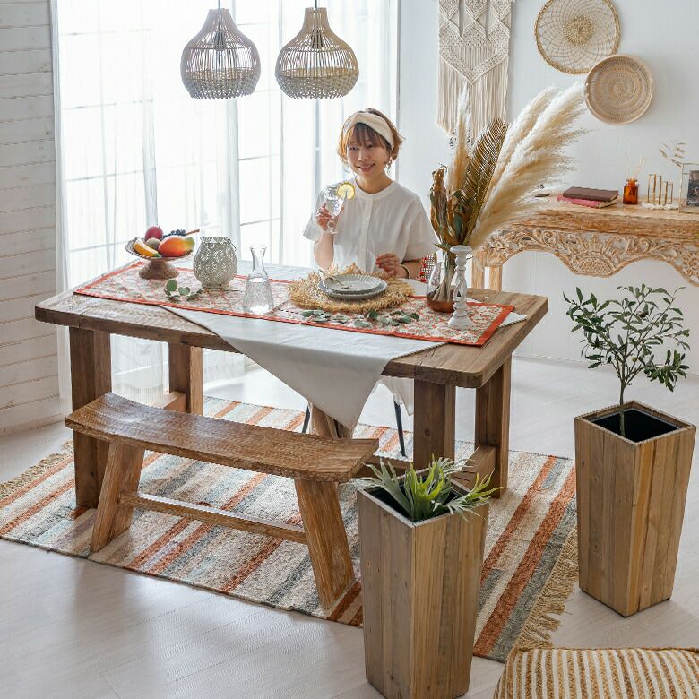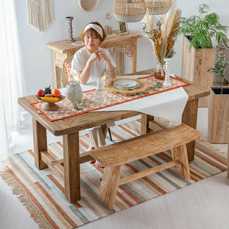 食卓テーブル ディスプレイ サスティナブル 什器 カフェ ダイニングテーブル リビングテーブル 木製 W 160cm D 80cm H 72cm 長方形 テーブル 食卓 古材 天然木 パイン 4人掛け 4人 ファミリー 大きめ ダイニング リビング おしゃれ シンプル ナチュラル 作業台 店舗 家具 インテリア リゾート アジアン [91551]